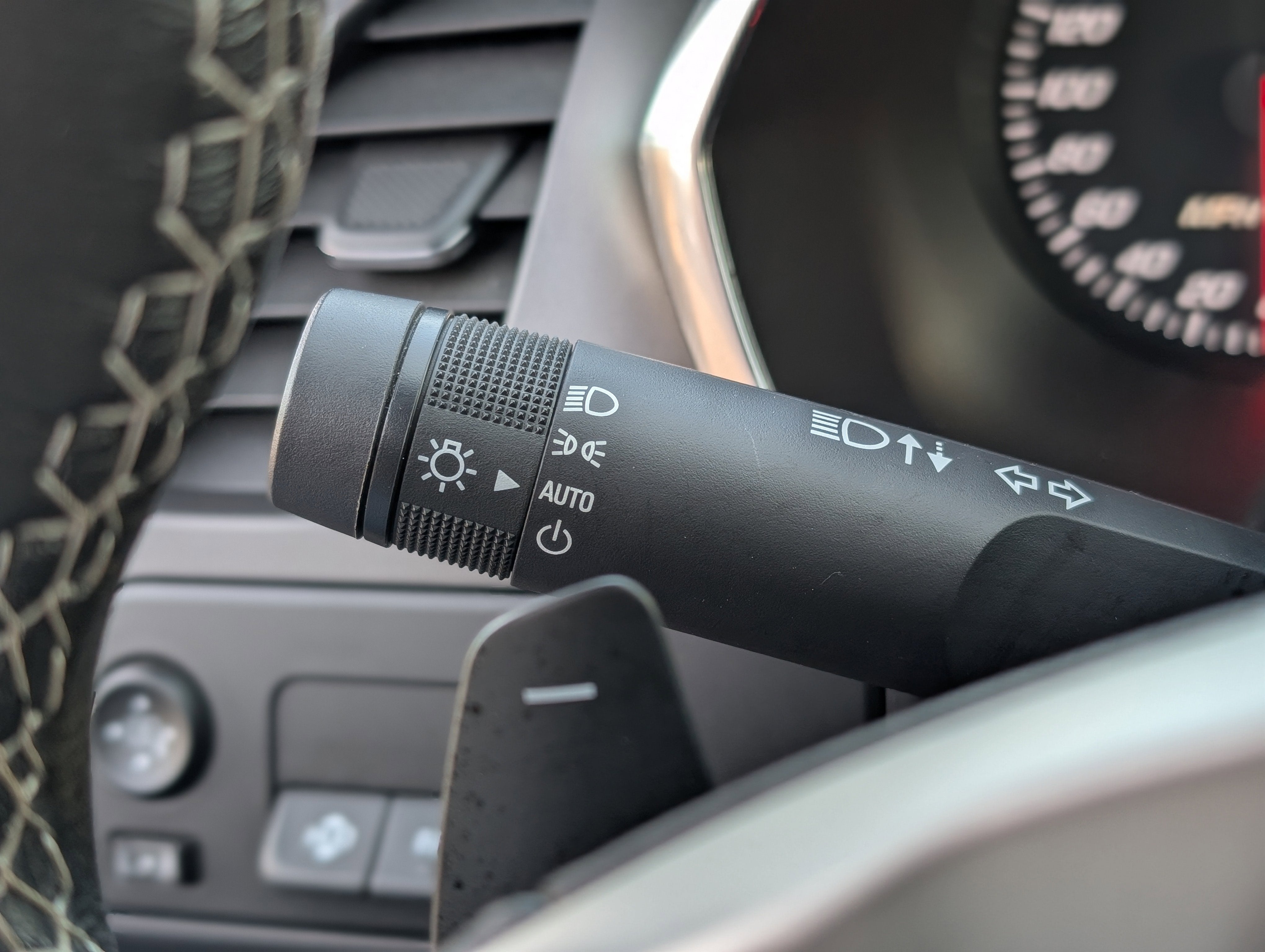 - Steering wheel, 3-spoke leather-wrapped, flat-bottom