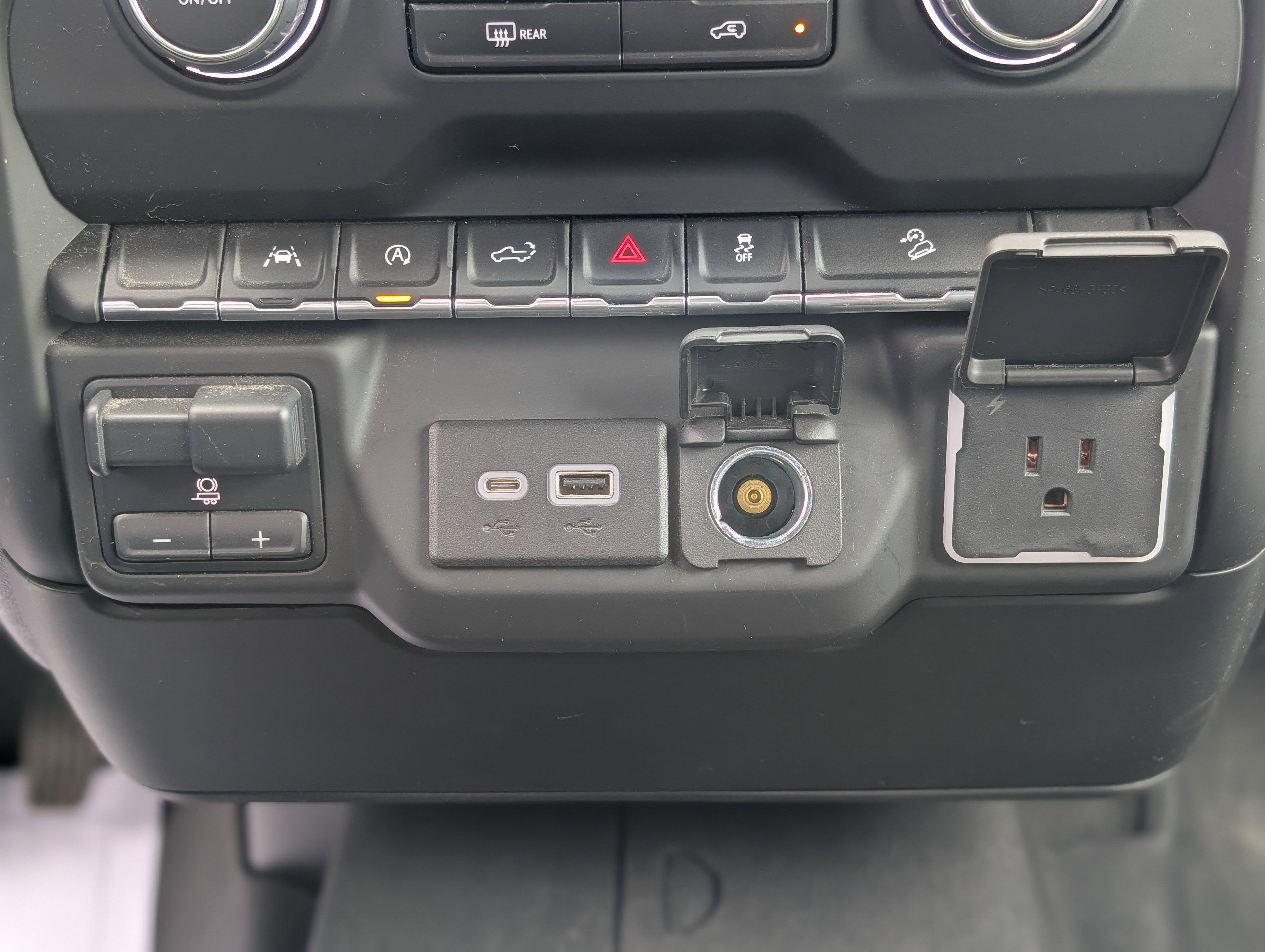- Lamps, cargo area, cab mounted integrated with center high mount stop lamp, with switch in bank on left side of steering wheel (incandescent on Regular Cab models, LED on Crew Cab and Double Cab models)